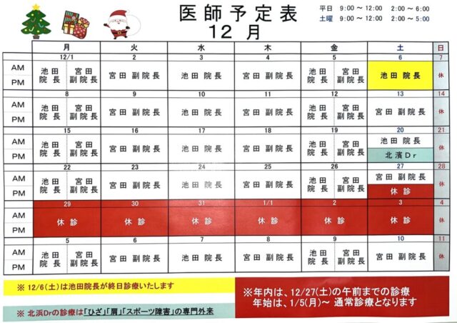 12月の医師予定表