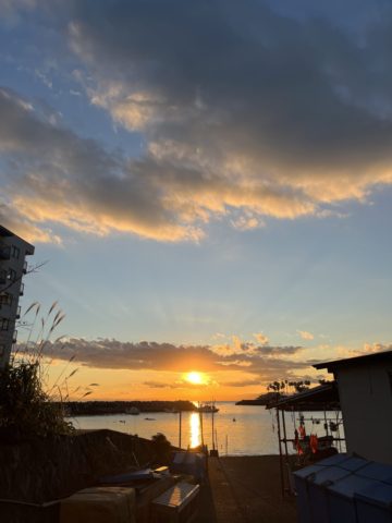 (小坪漁港の夕日-訪問マッサージの帰路にて)